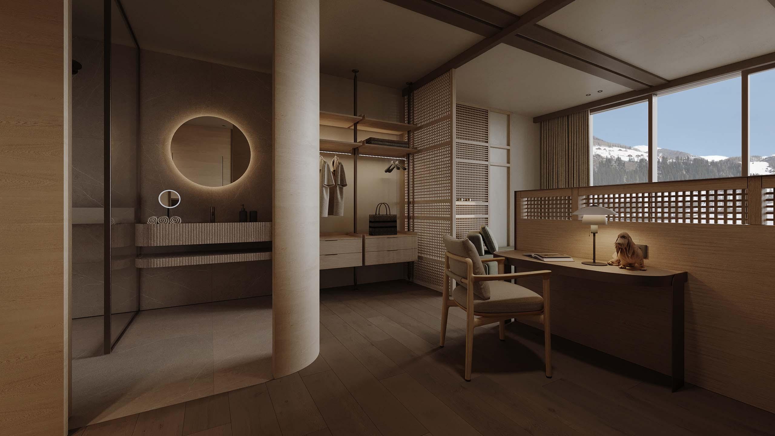 L’eleganza sobria, le forme minimaliste e i colori naturali creano l’ambiente ideale per rilassarsi. Grazie alla posizione al piano terra, si ha accesso diretto al giardino.