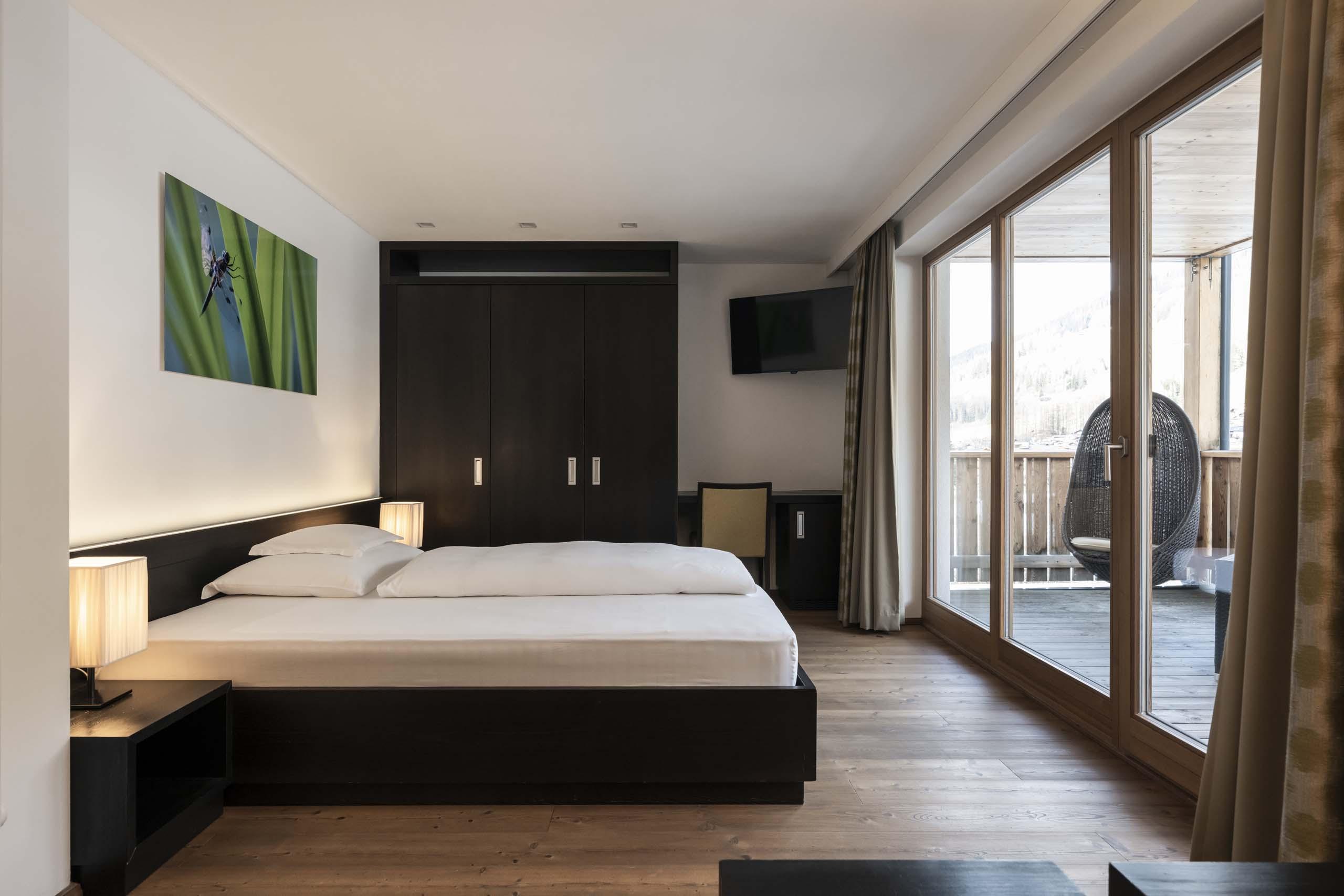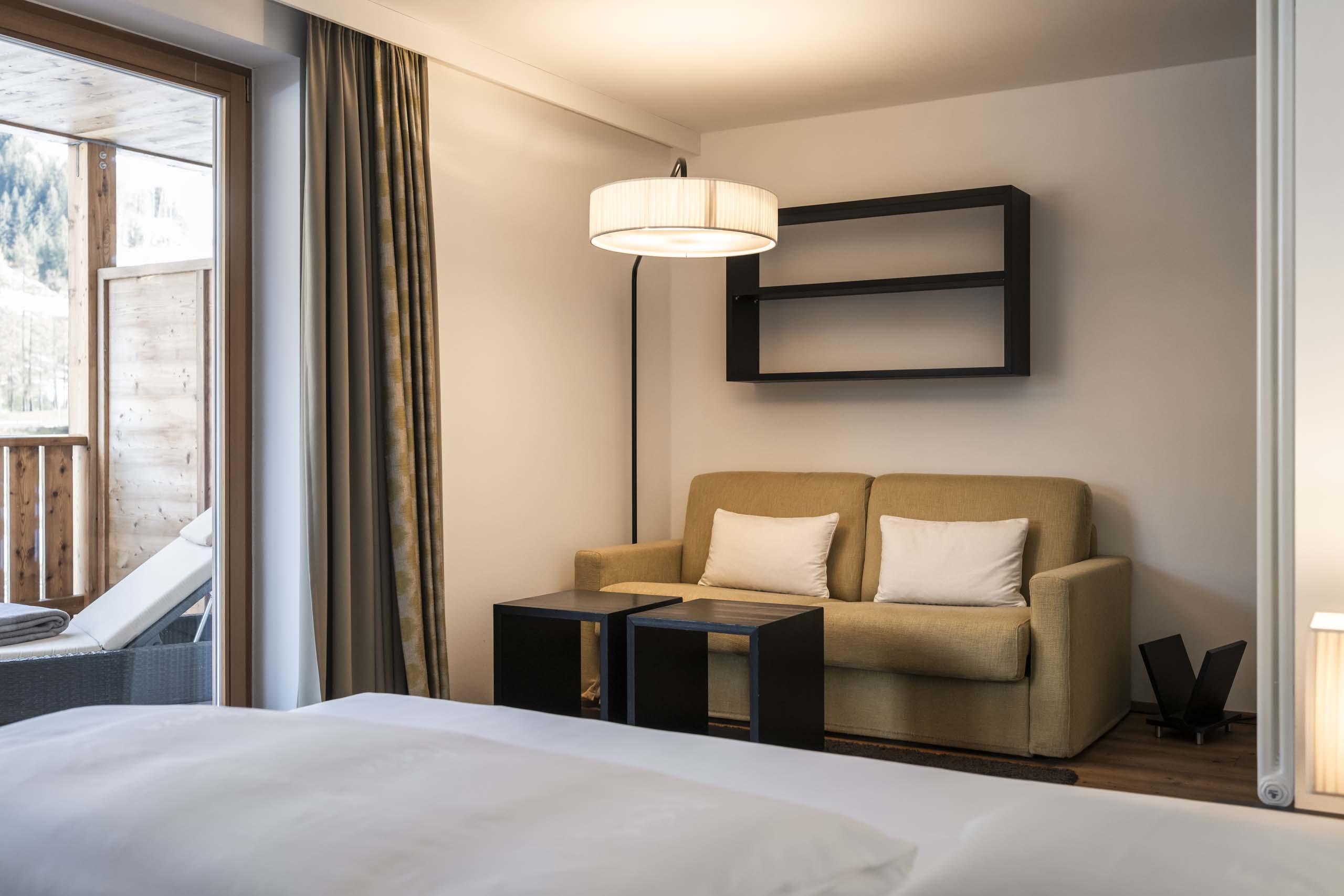 Das Einzelzimmer I love Single bietet auf einer Fläche von 27 m² den idealen Wohnkomfort für Alleinreisende. Auf dem 12 m² großen Balkon mit exklusiven Komfortliegen genießen Sie zudem den spektakulären Blick auf den Helm.